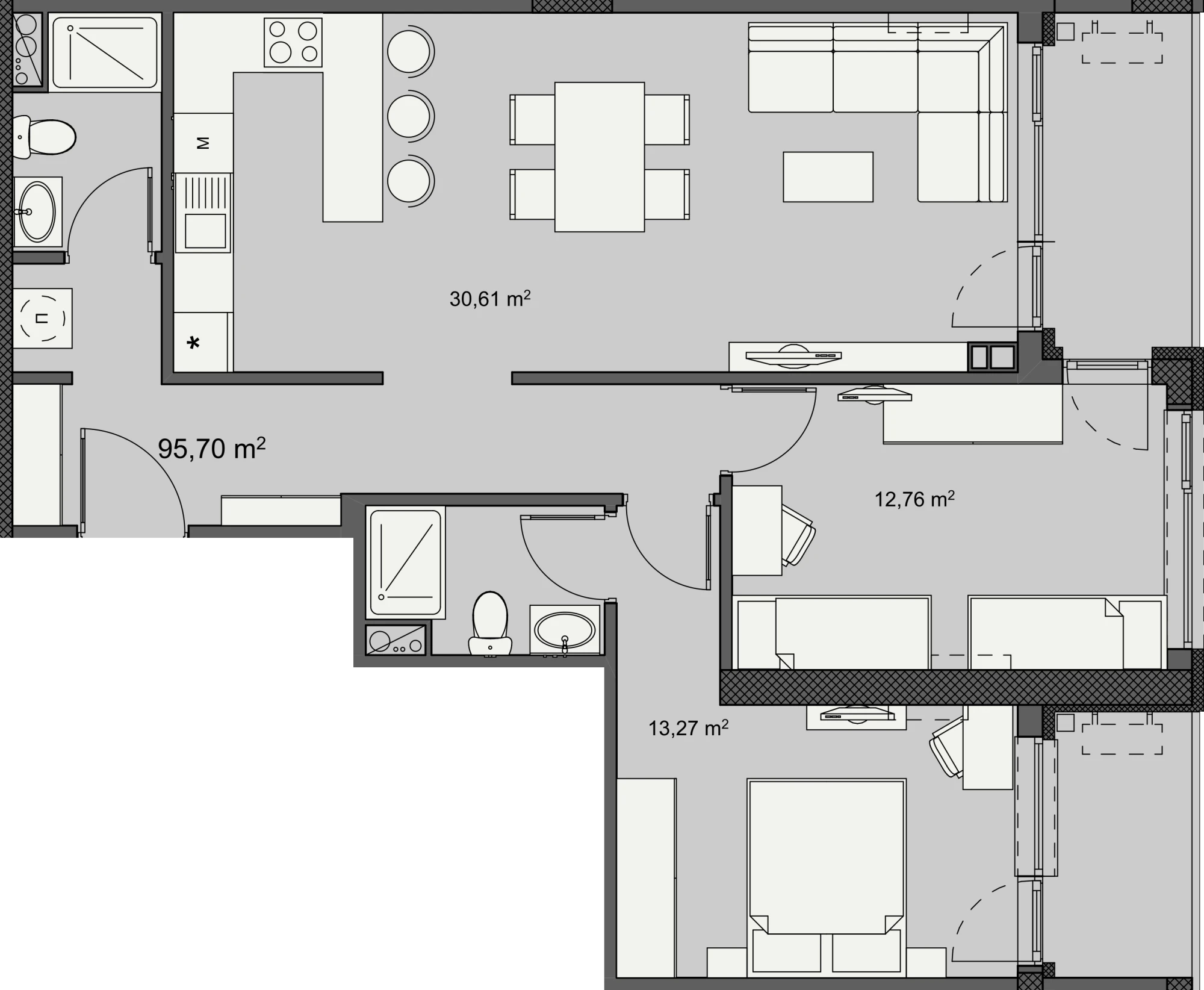 За продажба Б901-1 Вход Б Етаж 9 Стаи 3 Бани 2 Тераси 2 Площ 95.70 m² Обща площ 114.22 m² Запитване Запитване Б901-1 Име Електронна поща Телефон Съобщение Желая да получавам бюлетини Изпрати запитване 3-стаен апартамент с площ 96 м², разположен на етаж 9 в нова сграда в ж.к. Изгрев 147, гр. Бургас.