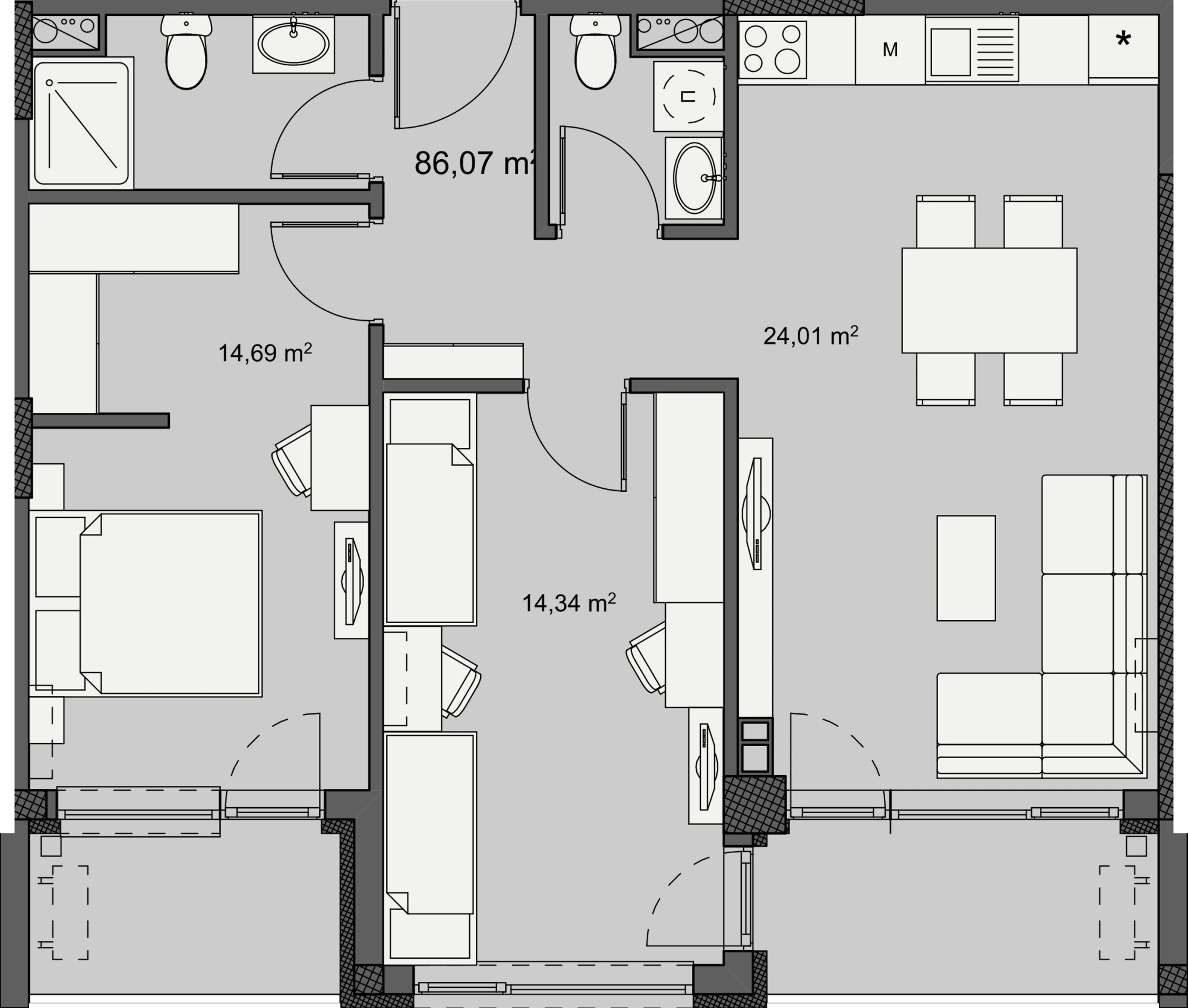 За продажба Г101 Вход Г Етаж 1 Стаи 3 Бани 2 Тераси 2 Площ 86.07 m² Обща площ 101.84 m² Запитване Запитване Г101 Име Електронна поща Телефон Съобщение Желая да получавам бюлетини Изпрати запитване 3-стаен апартамент с площ 86 м², разположен на етаж 1 в нова сграда в ж.к. Изгрев 147, гр. Бургас.