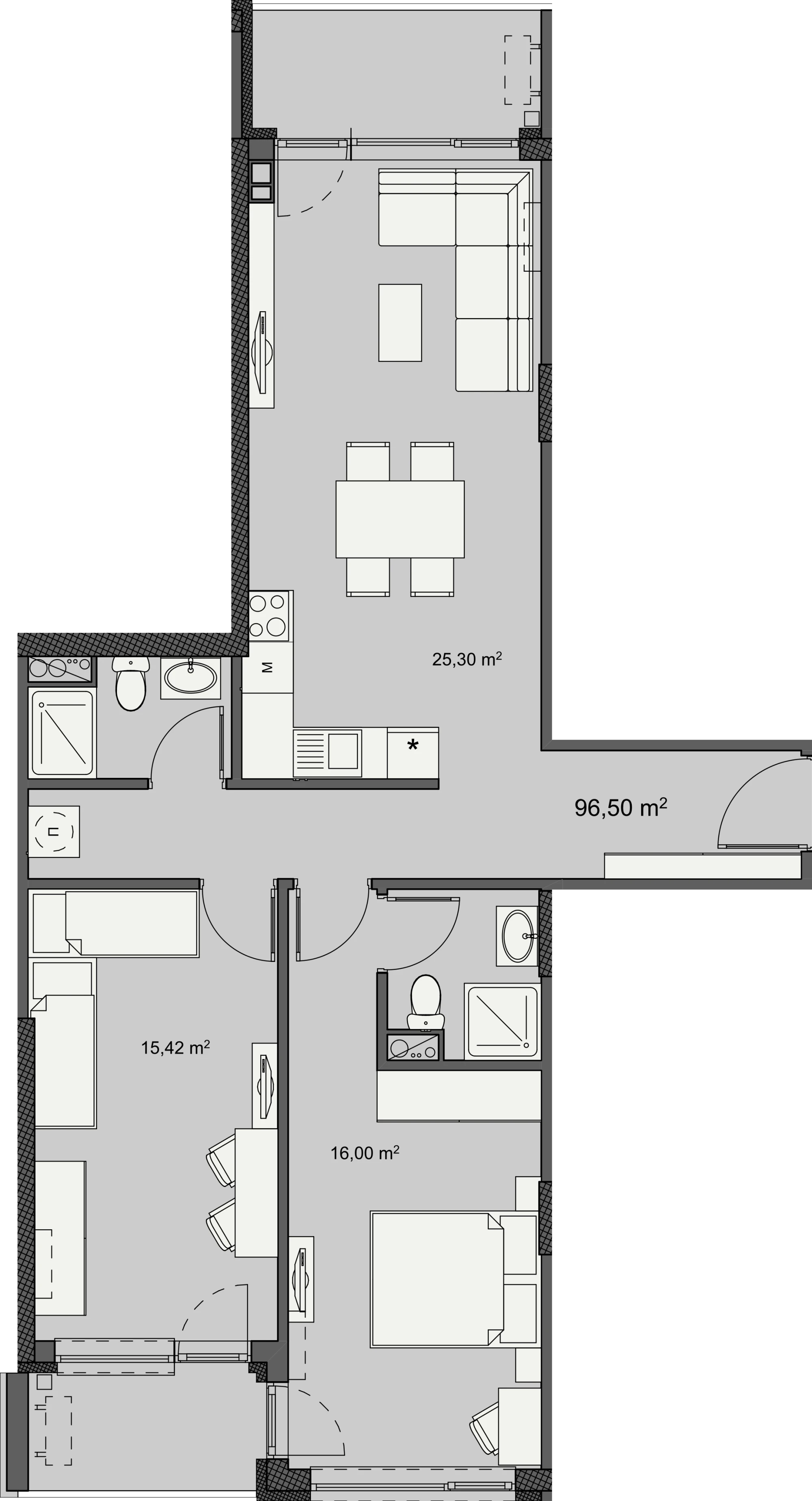 За продажба Г102 Вход Г Етаж 1 Стаи 3 Бани 2 Тераси 2 Площ 96.50 m² Обща площ 114.19 m² Запитване Запитване Г102 Име Електронна поща Телефон Съобщение Желая да получавам бюлетини Изпрати запитване 3-стаен апартамент с площ 97 м², разположен на етаж 1 в нова сграда в ж.к. Изгрев 147, гр. Бургас.