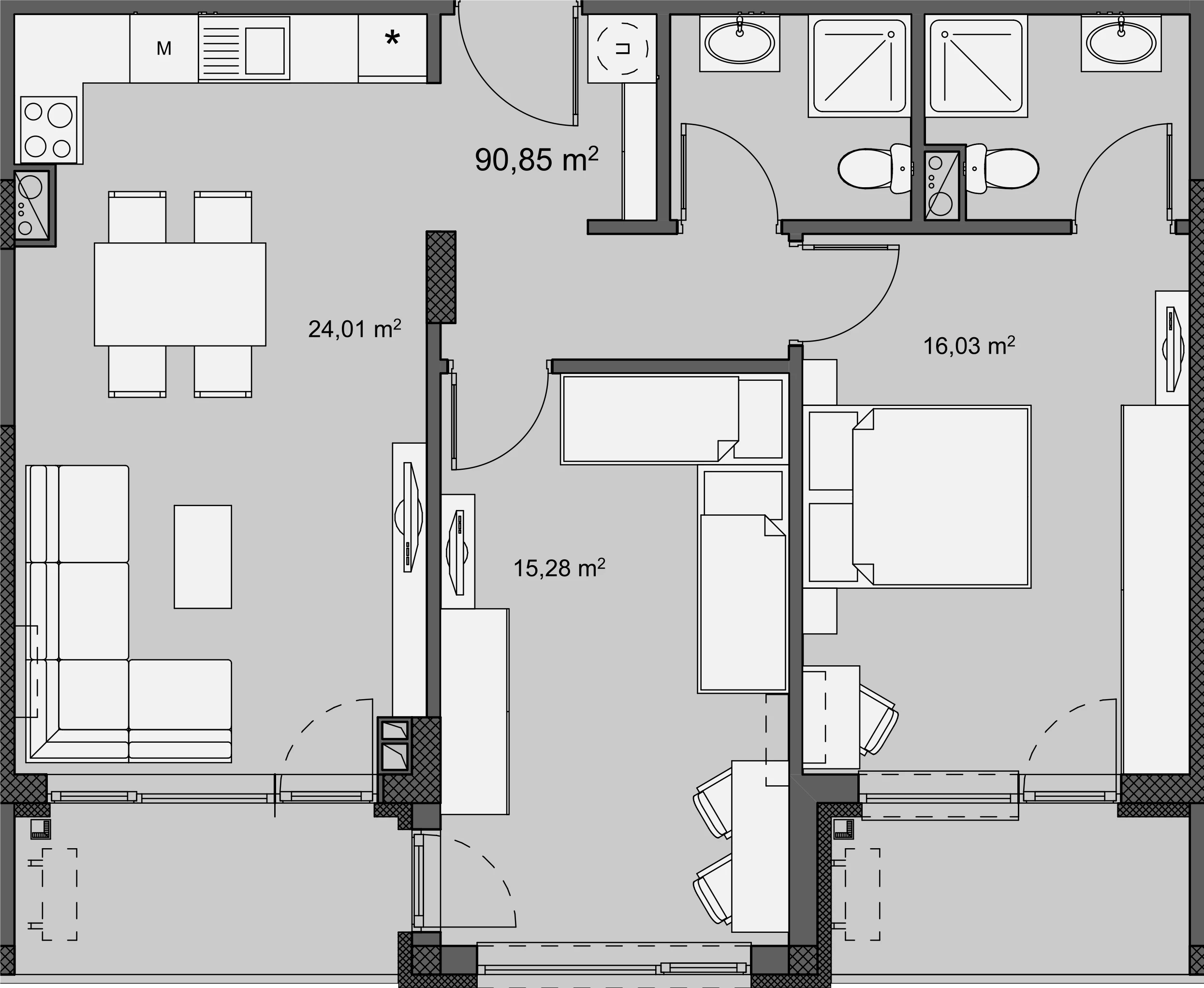 За продажба А404 Вход А Етаж 4 Стаи 3 Бани 2 Тераси 2 Площ 90.85 m² Обща площ 107.50 m² Запитване Запитване А404 Име Електронна поща Телефон Съобщение Желая да получавам бюлетини Изпрати запитване 3-стаен апартамент с площ 91 м², разположен на етаж 4 в нова сграда в ж.к. Изгрев 147, гр. Бургас.