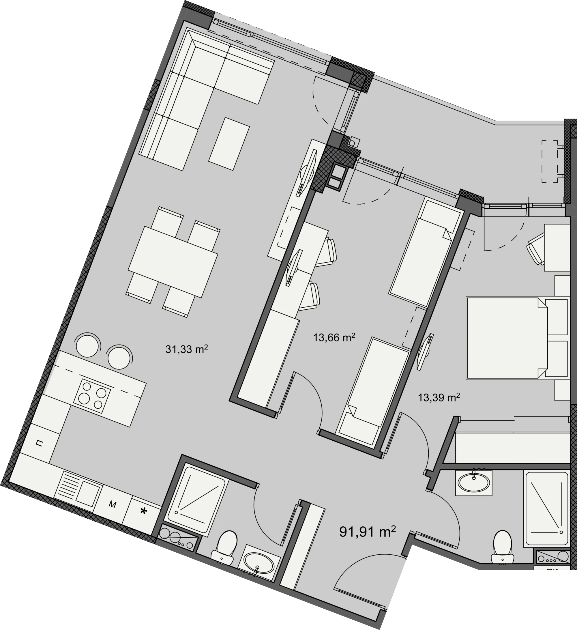 For Sale V802 Entrance V Floor 8 Rooms 3 Bathrooms 2 Terraces 1 Area 91.91 m² Common Area 108.75 m² Inquiry Inquiry V802 Name E-mail Phone Message I wish to receive a newsletters Send Inquiry 3 room apartment with area 92 m², located on floor 8 in new building in Izgrev 147, Burgas City.