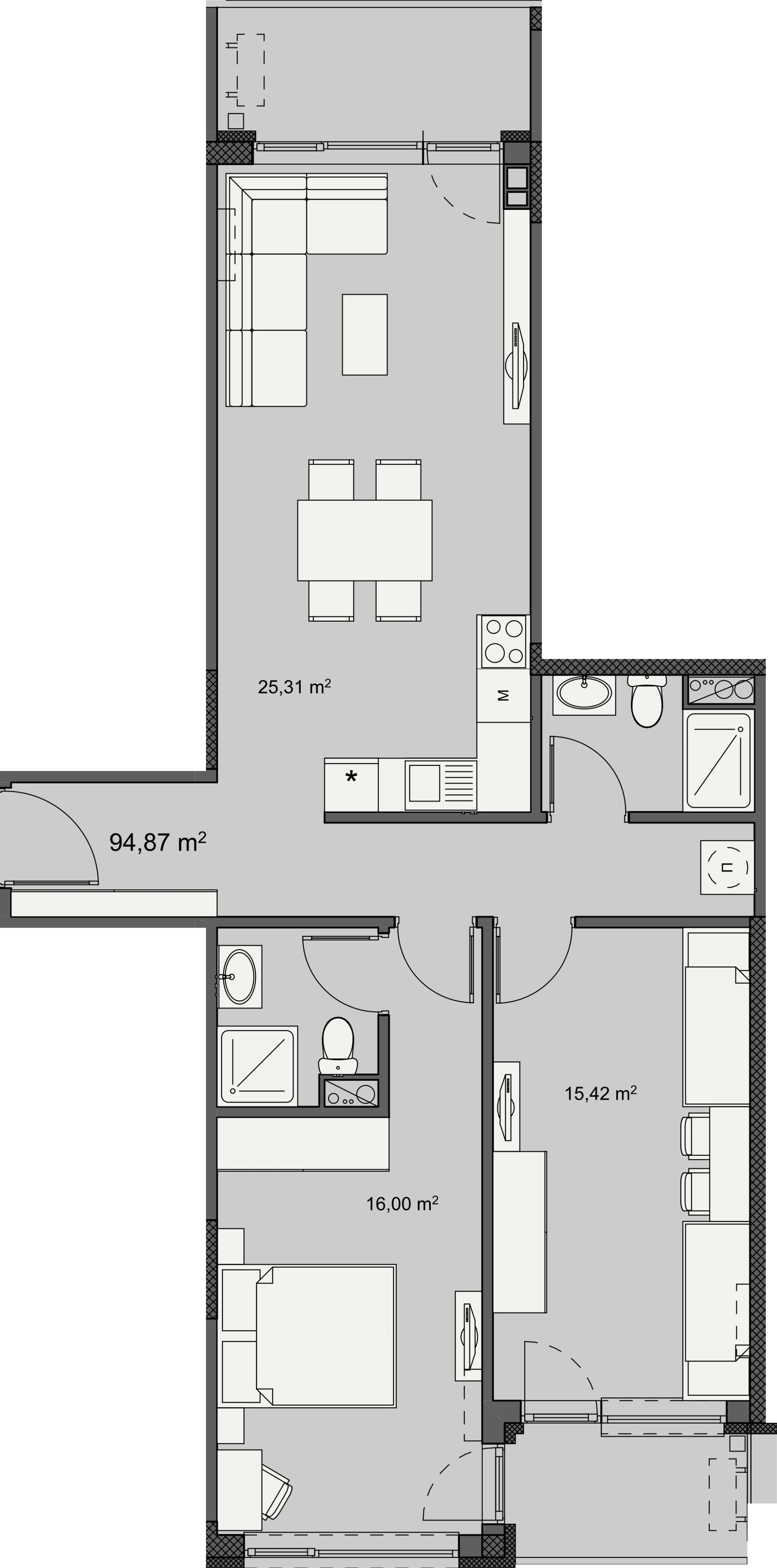 For Sale V804 Entrance V Floor 8 Rooms 3 Bathrooms 2 Terraces 2 Area 94.87 m² Common Area 112.26 m² Inquiry Inquiry V804 Name E-mail Phone Message I wish to receive a newsletters Send Inquiry 3 room apartment with area 95 m², located on floor 8 in new building in Izgrev 147, Burgas City.