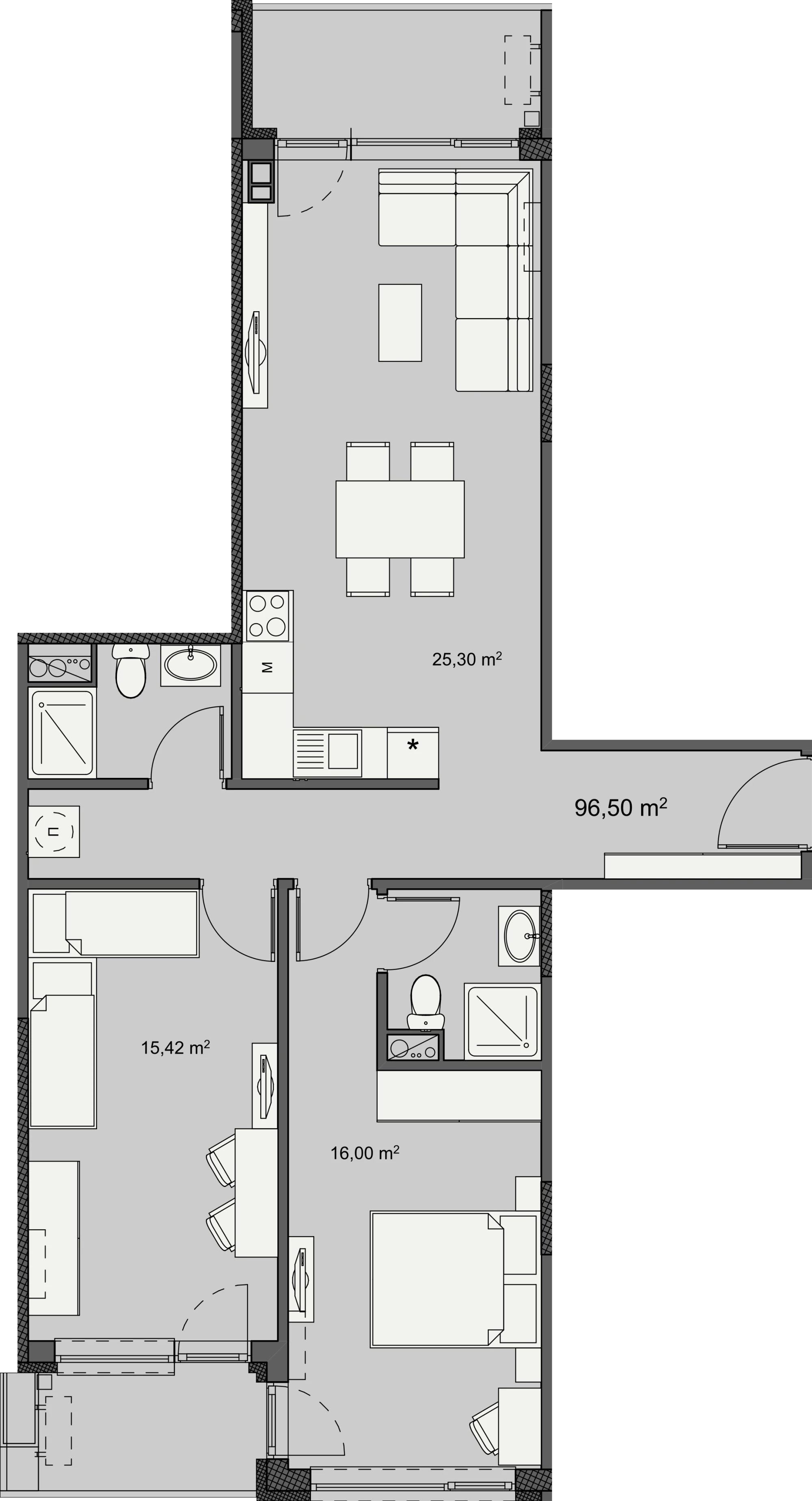 For Sale G202 Entrance G Floor 2 Rooms 3 Bathrooms 2 Terraces 2 Area 96.50 m² Common Area 114.19 m² Inquiry Inquiry G202 Name E-mail Phone Message I wish to receive a newsletters Send Inquiry 3 room apartment with area 97 m², located on floor 2 in new building in Izgrev 147, Burgas City.