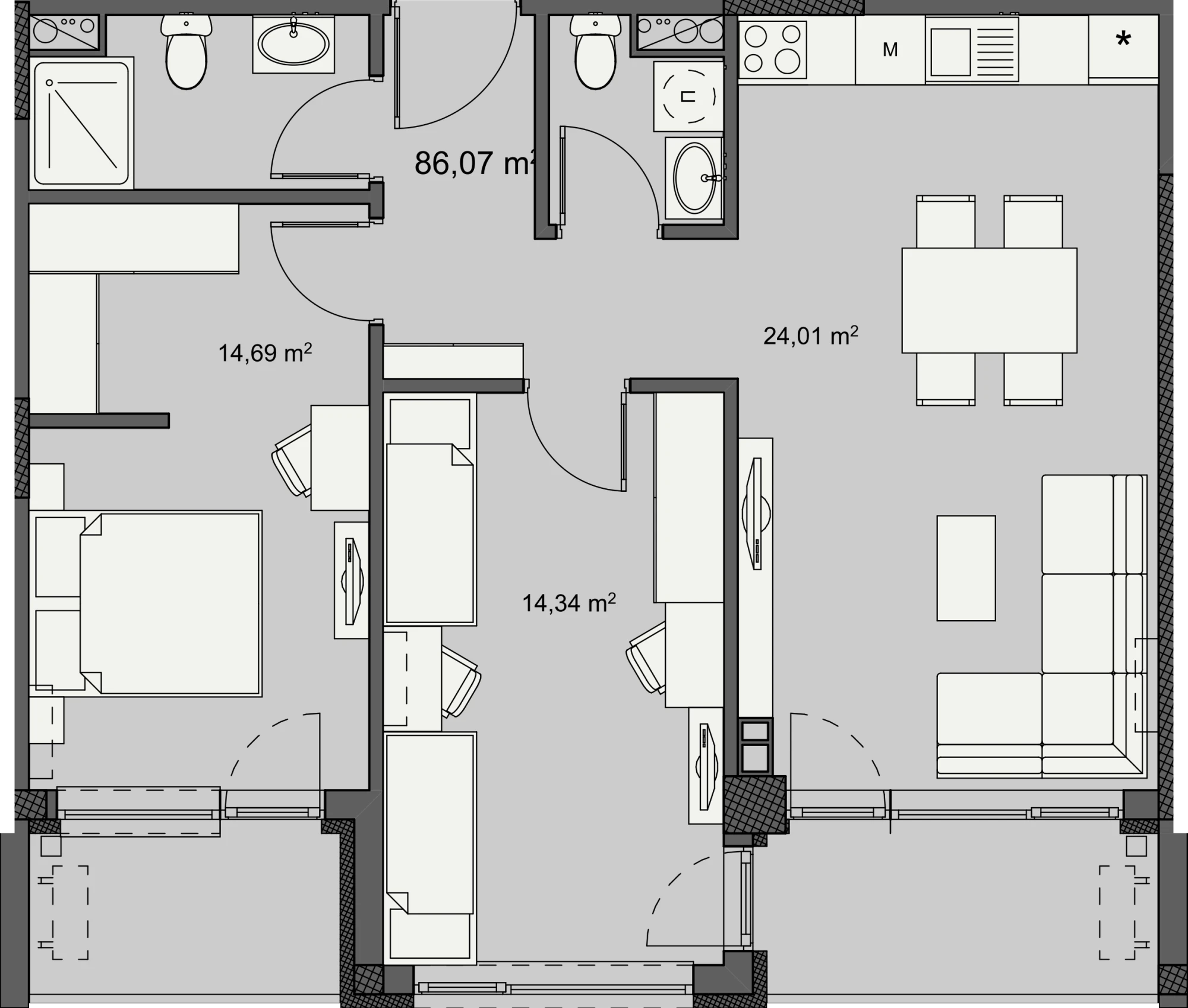 For Sale G601 Entrance G Floor 6 Rooms 3 Bathrooms 2 Terraces 2 Area 86.07 m² Common Area 101.84 m² Inquiry Inquiry G601 Name E-mail Phone Message I wish to receive a newsletters Send Inquiry 3 room apartment with area 86 m², located on floor 6 in new building in Izgrev 147, Burgas City.
