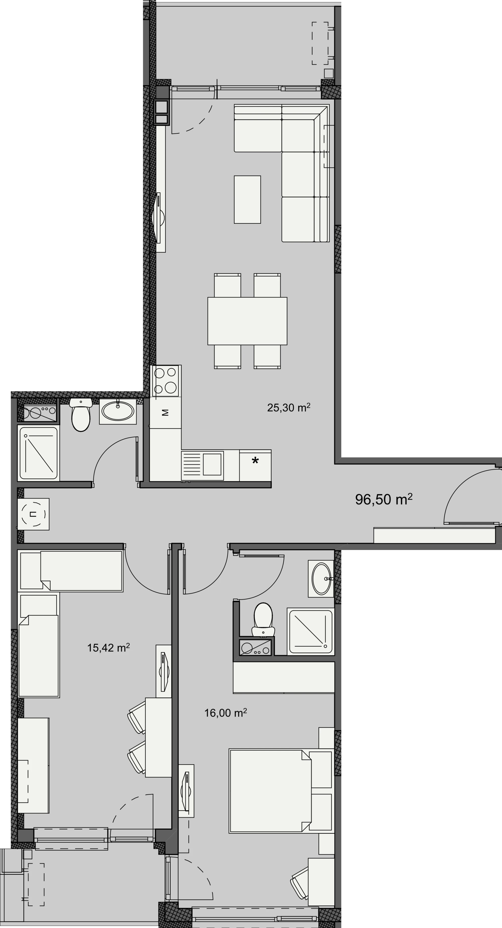 For Sale G1102 Entrance G Floor 11 Rooms 3 Bathrooms 2 Terraces 2 Area 96.50 m² Common Area 114.19 m² Inquiry Inquiry G1102 Name E-mail Phone Message I wish to receive a newsletters Send Inquiry 3 room apartment with area 97 m², located on floor 11 in new building in Izgrev 147, Burgas City.