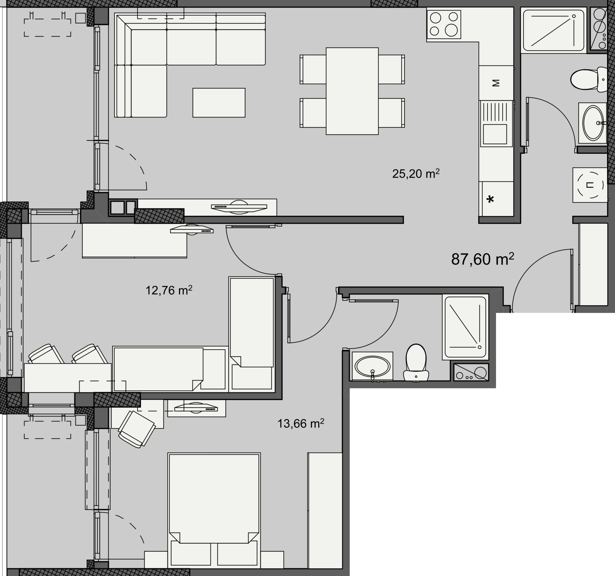 For Sale D105 Entrance D Floor 1 Rooms 3 Bathrooms 2 Terraces 2 Area 87.60 m² Common Area 103.65 m² Inquiry Inquiry D105 Name E-mail Phone Message I wish to receive a newsletters Send Inquiry 3 room apartment with area 88 m², located on floor 1 in new building in Izgrev 147, Burgas City.