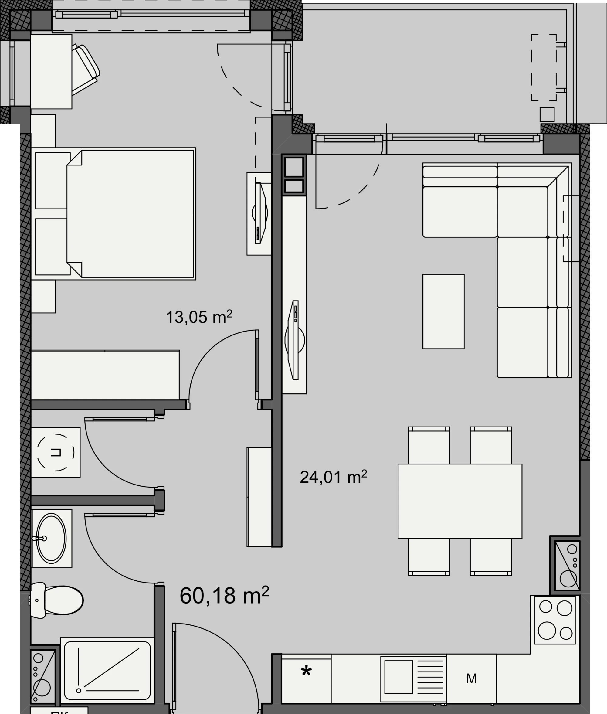 For Sale E101 Entrance E Floor 1 Rooms 2 Bathrooms 1 Terraces 1 Area 60.18 m² Common Area 71.21 m² Inquiry Inquiry E101 Name E-mail Phone Message I wish to receive a newsletters Send Inquiry 2 room apartment with area 60 m², located on floor 1 in new building in Izgrev 147, Burgas City.