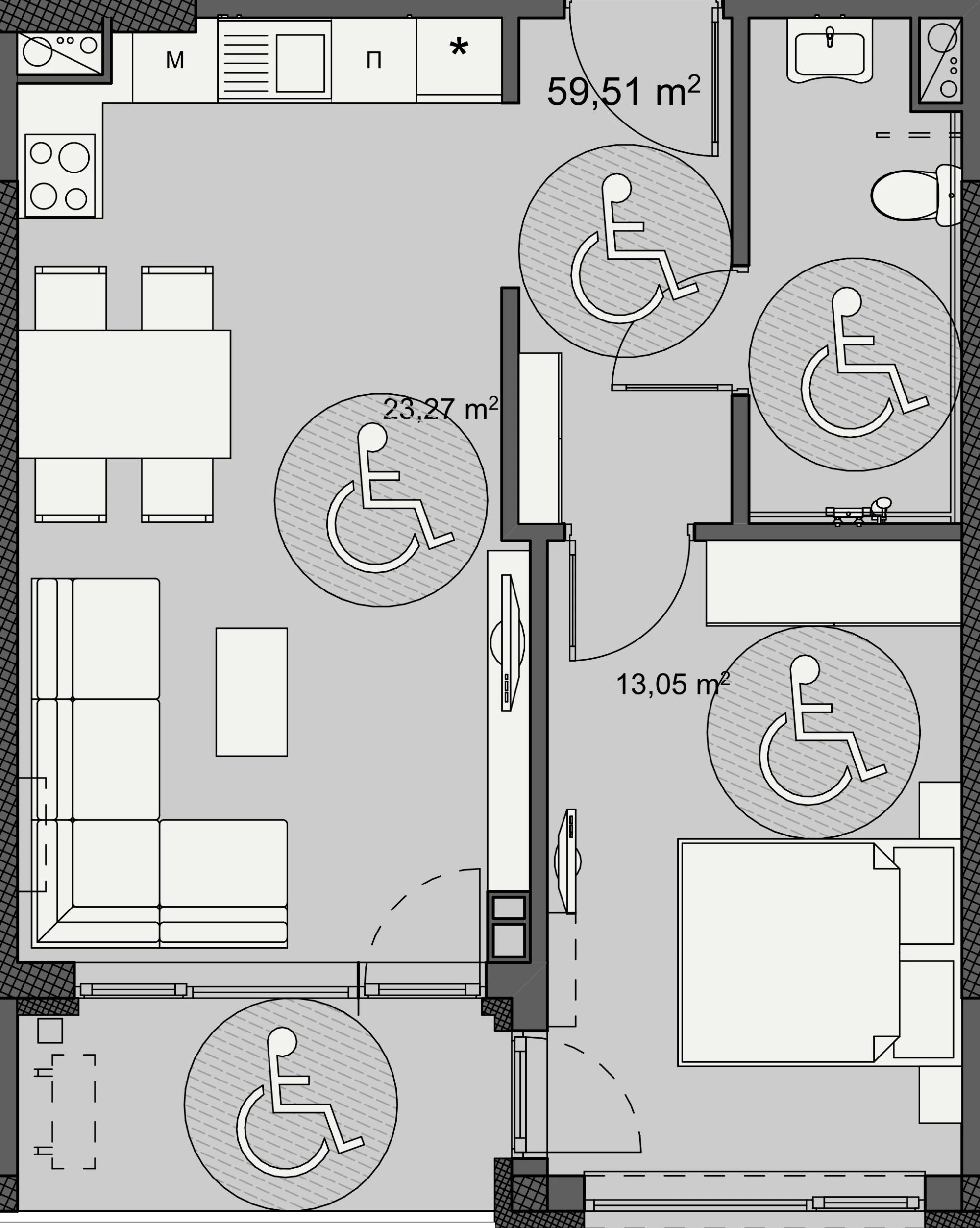 For Sale E104 Entrance E Floor 1 Rooms 2 Bathrooms 1 Terraces 1 Area 59.51 m² Common Area 70.42 m² Inquiry Inquiry E104 Name E-mail Phone Message I wish to receive a newsletters Send Inquiry 2 room apartment with area 60 m², located on floor 1 in new building in Izgrev 147, Burgas City.