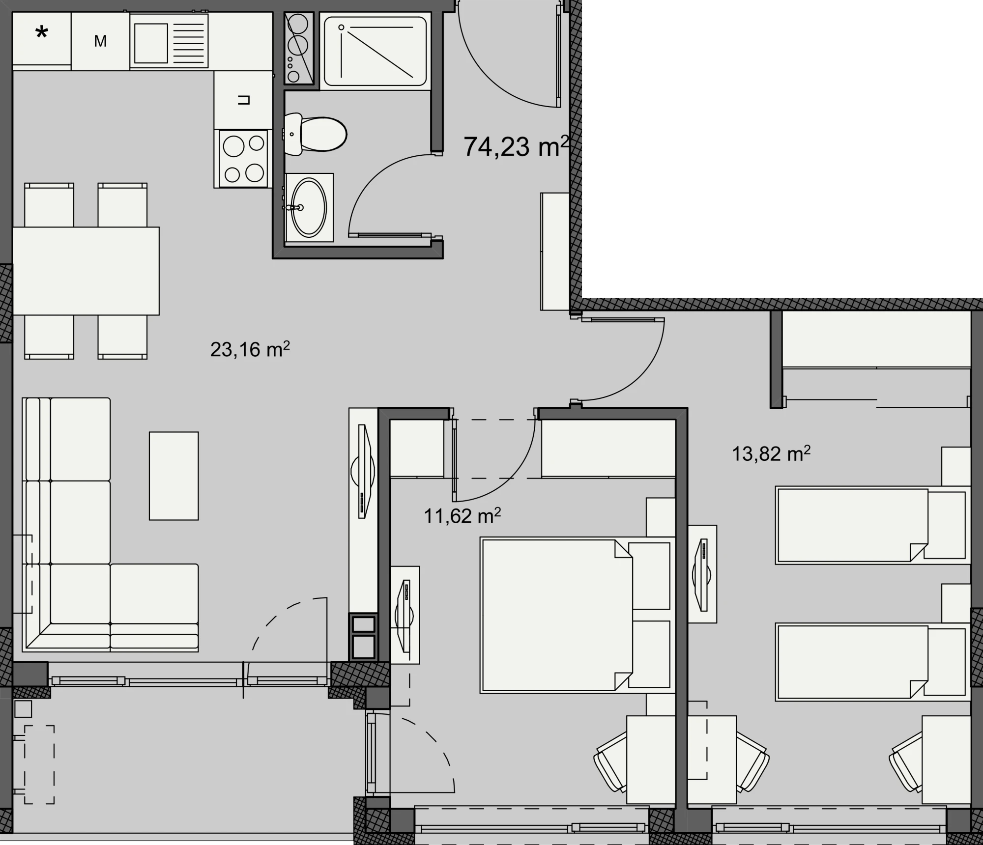 For Sale E406 Entrance E Floor 4 Rooms 3 Bathrooms 1 Terraces 1 Area 74.23 m² Common Area 87.83 m² Inquiry Inquiry E406 Name E-mail Phone Message I wish to receive a newsletters Send Inquiry 3 room apartment with area 74 m², located on floor 4 in new building in Izgrev 147, Burgas City.