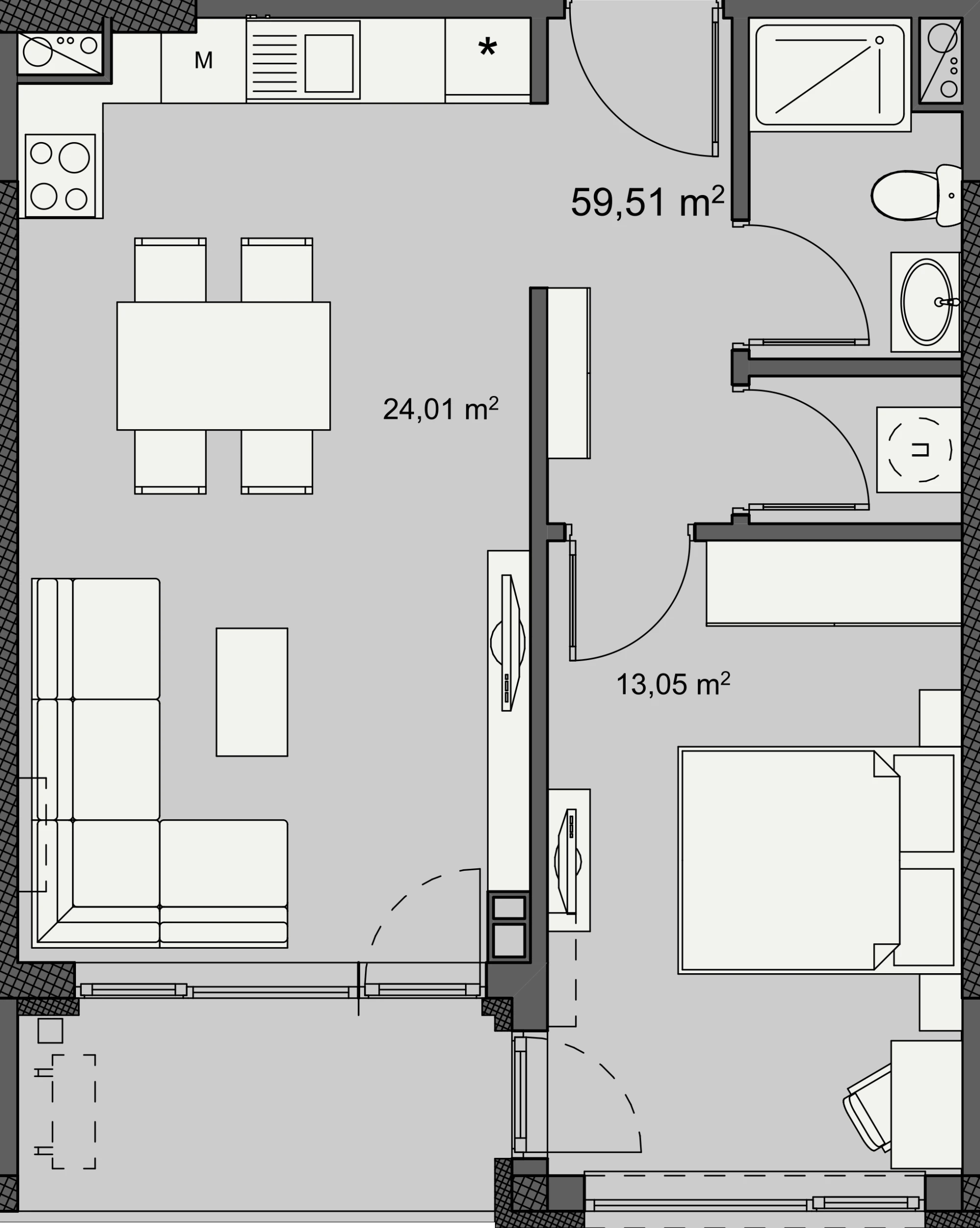 For Sale E604 Entrance E Floor 6 Rooms 2 Bathrooms 1 Terraces 1 Area 59.51 m² Common Area 70.42 m² Inquiry Inquiry E604 Name E-mail Phone Message I wish to receive a newsletters Send Inquiry 2 room apartment with area 60 m², located on floor 6 in new building in Izgrev 147, Burgas City.