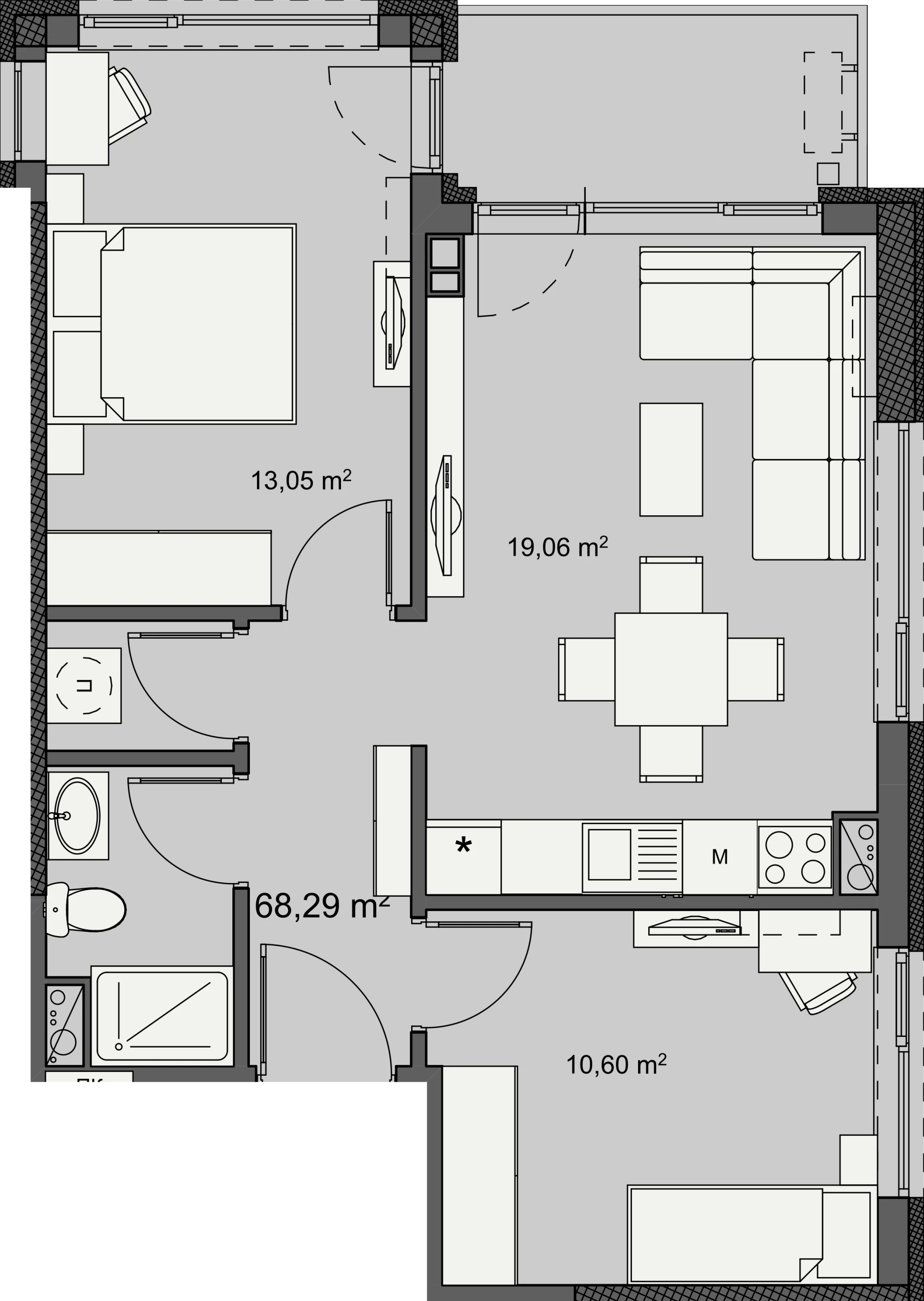 For Sale E1001 Entrance E Floor 10 Rooms 2 Bathrooms 1 Terraces 1 Area 68.29 m² Common Area 80.81 m² Inquiry Inquiry E1001 Name E-mail Phone Message I wish to receive a newsletters Send Inquiry 2 room apartment with area 68 m², located on floor 10 in new building in Izgrev 147, Burgas City.