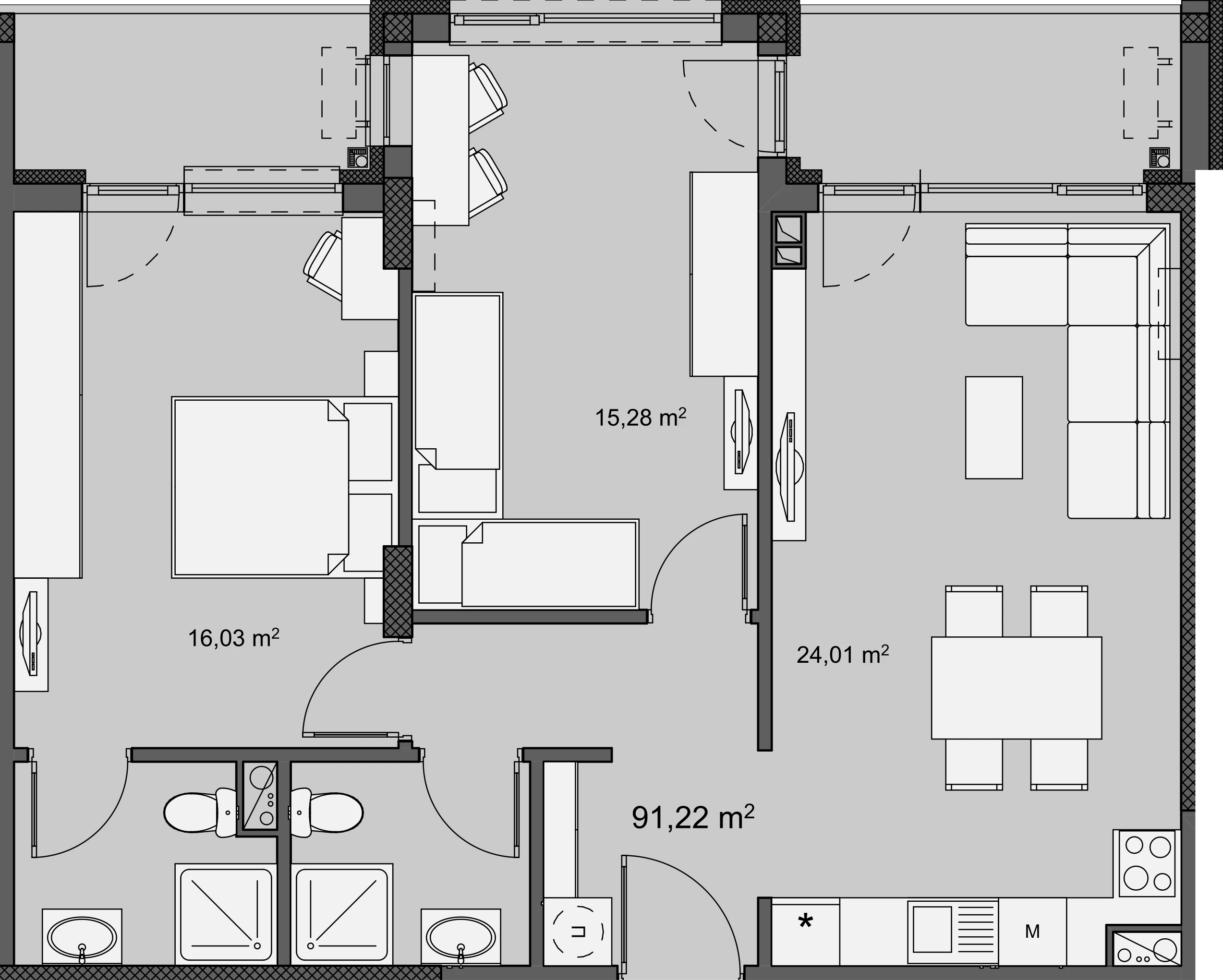 For Sale A508 Entrance A Floor 5 Rooms 3 Bathrooms 2 Terraces 2 Area 91.22 m² Common Area 107.94 m² Inquiry Inquiry A508 Name E-mail Phone Message I wish to receive a newsletters Send Inquiry 3 room apartment with area 91 m², located on floor 5 in new building in Izgrev 147, Burgas City.