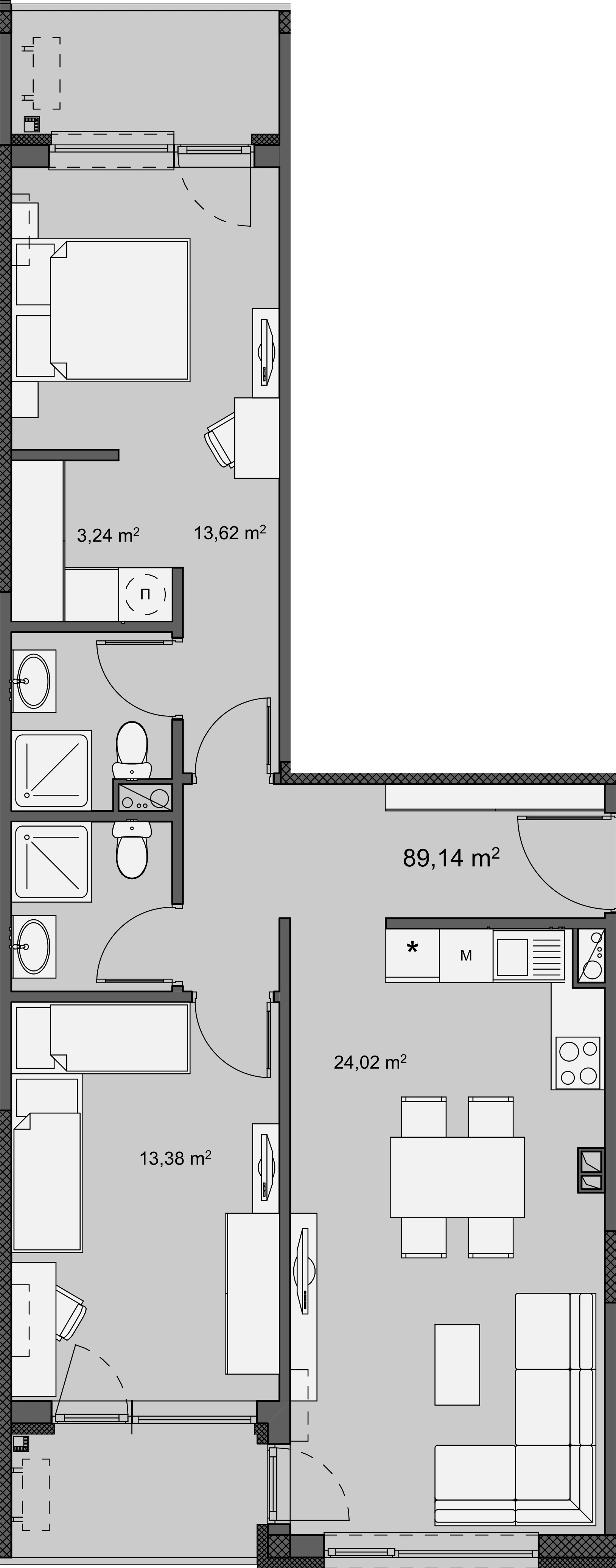 For Sale A607 Entrance A Floor 6 Rooms 3 Bathrooms 2 Terraces 2 Area 89.14 m² Common Area 105.48 m² Inquiry Inquiry A607 Name E-mail Phone Message I wish to receive a newsletters Send Inquiry 3 room apartment with area 89 m², located on floor 6 in new building in Izgrev 147, Burgas City.