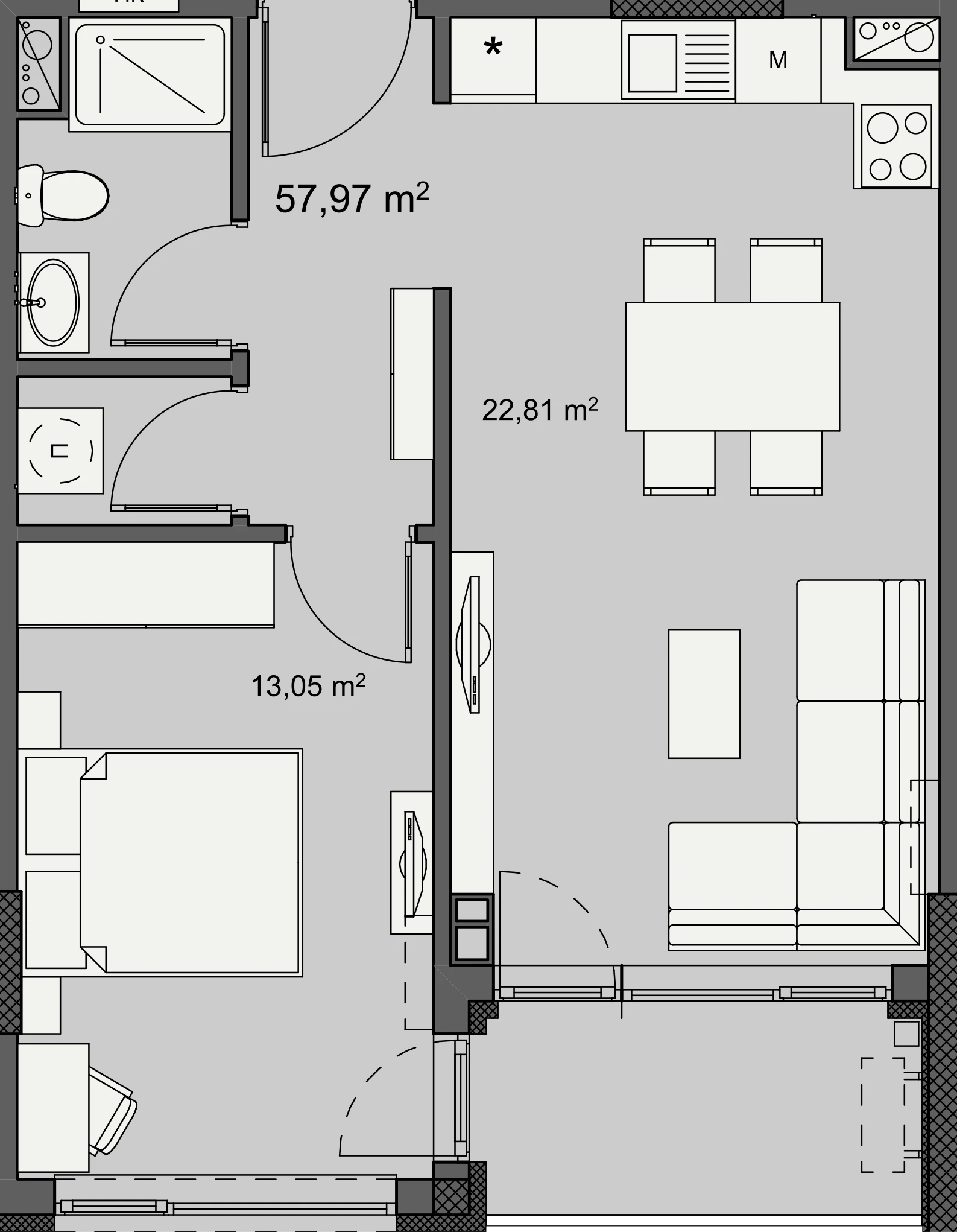 For Sale B103 Entrance B Floor 1 Rooms 2 Bathrooms 1 Terraces 1 Area 57.97 m² Common Area 69.19 m² Inquiry Inquiry B103 Name E-mail Phone Message I wish to receive a newsletters Send Inquiry 2 room apartment with area 58 m², located on floor 1 in new building in Izgrev 147, Burgas City.